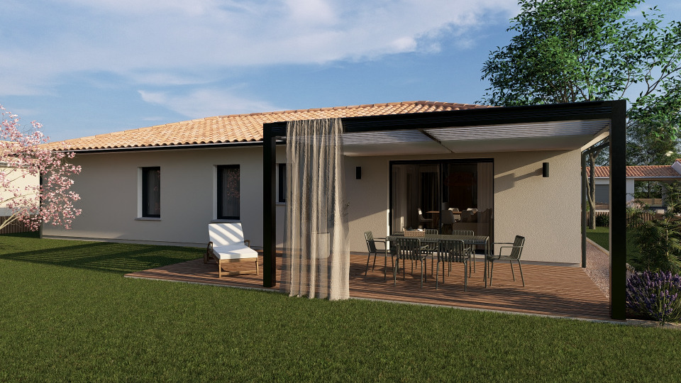 Nous vous proposons une maison de 4 chambres dont une avec sde privative, cuisine ouverte sur séjour, garage. Grandes ouvertures vers le jardins. Maison aux normes RE2020, domotique, climatisation…