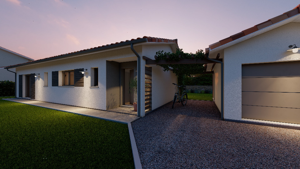 Implantée sur un terrain de 1 950 m², la maison modèle BREVA de 114 m² habitables offre confort et modernité :